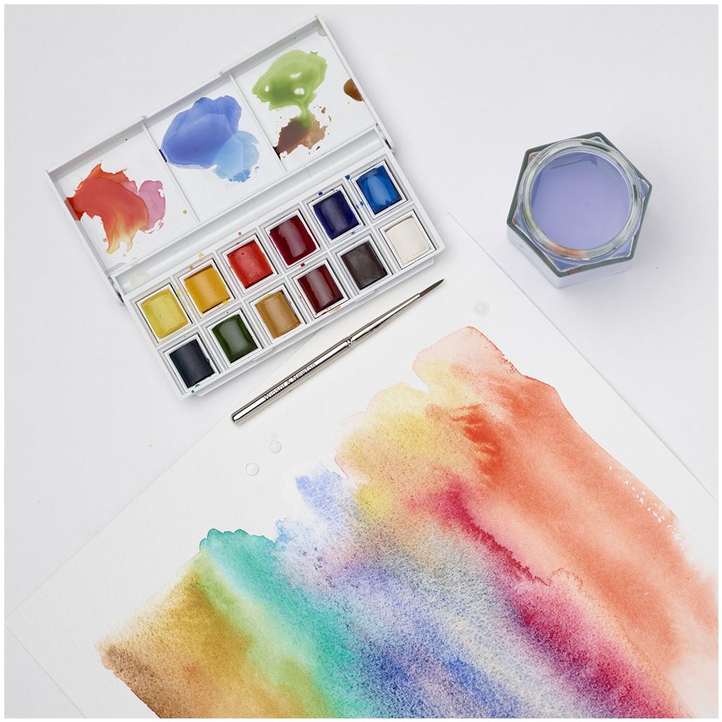 Skvělá volba pro studenty a začátečníkyPůlpánvičky jsou kompaktní a vždy připravené k použití. Stačí je navlhčit štětcem s vodou a barva probudí. Jsou ideální pro malování v plenéru, na dovolené i pro radost doma. Díky malé velikosti se snadno vejdou do kapesního akvarelového setu a nikdy nepřekáží v tašce ani batohu. V nabídce je 40 odstínů, které se krásně mísí a vytvářejí plynulé přechody. Barvy v půlpánvičkách zůstávají vždy po ruce a i po dlouhé pauze se aktivují několika doteky mokrého štětce. |