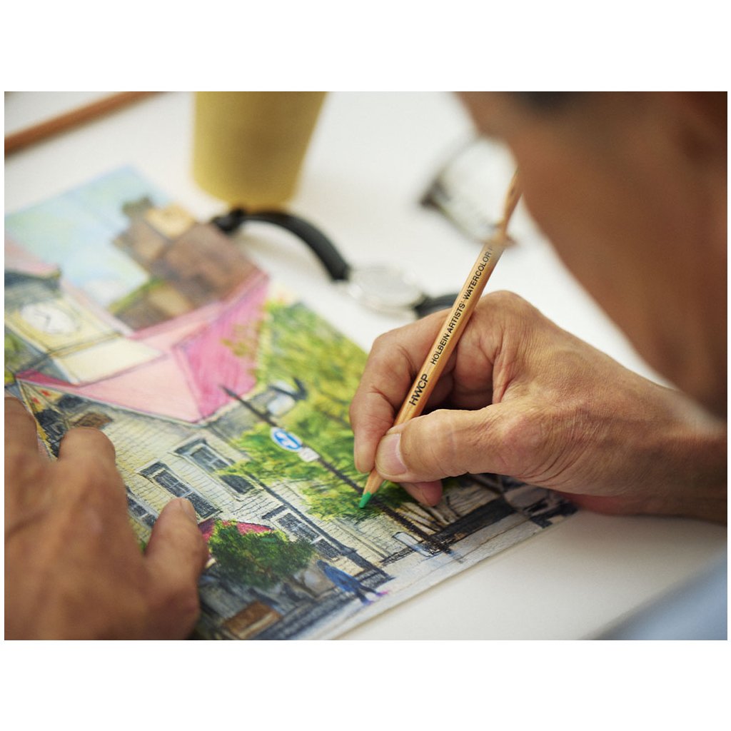 Dokonalé sladění odstínůAkvarelové pastelky Holbein jsou vyrobené ze stejných pigmentů jako klasické akvarelové barvy Holbein. Každý z 50 odstínů má své číselné označení, podle kterého snadno poznáte odpovídající barvu v akvarelových tubách – například pastelka WP010 se shoduje s akvarelem W010 v 5ml tubě a W210 v 15ml tubě. Díky tomu můžete pastelky i akvarely volně kombinovat a mít jistotu, že barvy budou dokonale ladit. Pastelkami nakreslíte jemné linky a detaily, barvy z tuby vám zase dají možnost malovat větší plochy a výraznější tahy. |