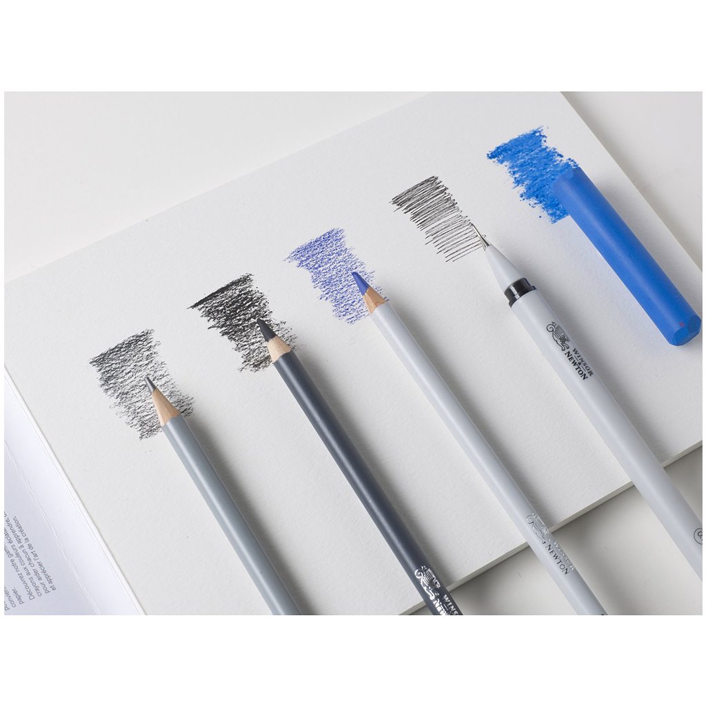 Vyzkoušejte kombinaci tužky a pastelky pro vytvoření jemných přechodů a stínování. Středně zrnitý povrch papíru umožňuje snadné vrstvení a míchání barev, což dodá Vašim kresbám hloubku a dynamiku.