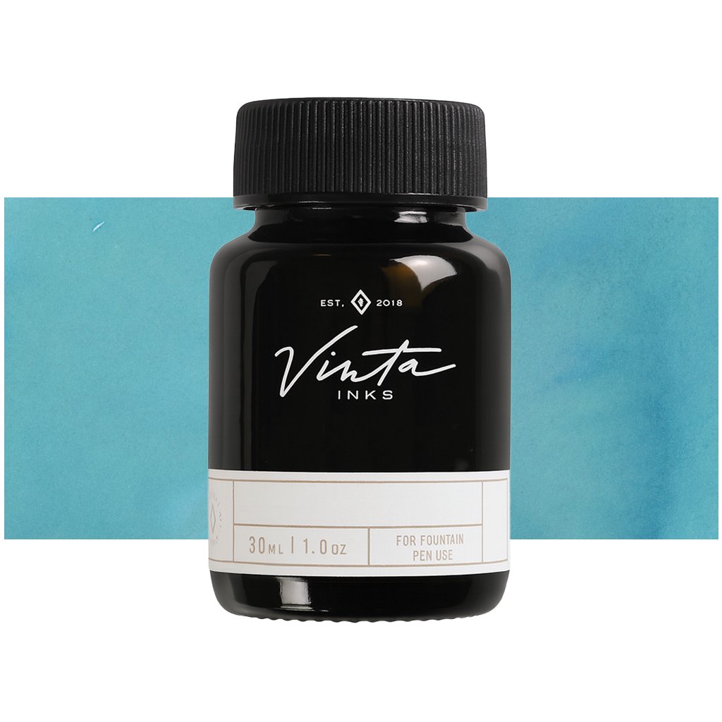 Skleněná lahvička kouřové barvy s inkoustem je pečlivě zabalena v papírové krabičce se zlatou ražbou. Inkoust je rychleschnoucí, na vodní bází - není voděodolný. Svým složením jsou inkousty Vinta vhodné pro plnicí pera i kaligrafii.