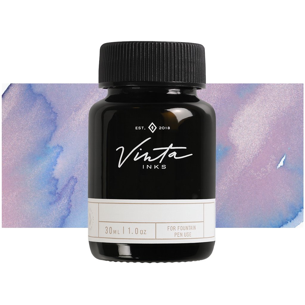 Skleněná lahvička kouřové barvy s inkoustem je pečlivě zabalena v papírové krabičce se zlatou ražbou. Inkoust je rychleschnoucí, na vodní bází - není voděodolný. Svým složením jsou inkousty Vinta vhodné pro plnicí pera i kaligrafii.