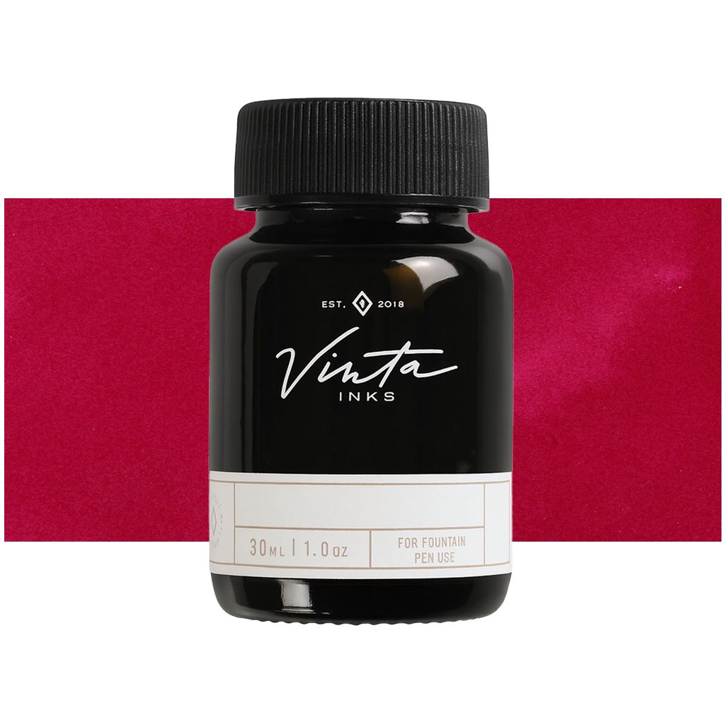 Skleněná lahvička kouřové barvy s inkoustem je pečlivě zabalena v papírové krabičce se zlatou ražbou. Inkoust je rychleschnoucí, na vodní bází - není voděodolný. Svým složením jsou inkousty Vinta vhodné pro plnicí pera i kaligrafii.