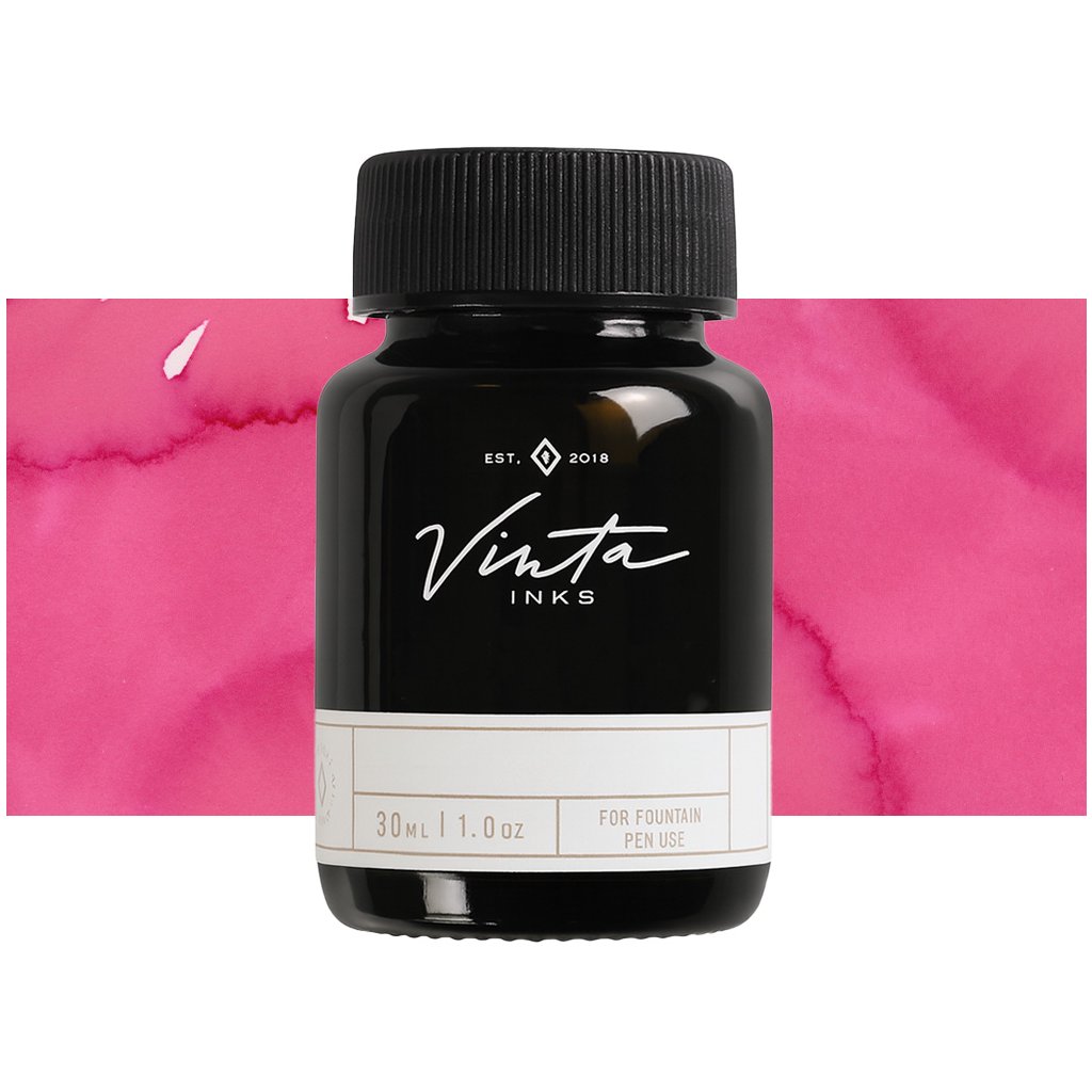 Skleněná lahvička kouřové barvy s inkoustem je pečlivě zabalena v papírové krabičce se zlatou ražbou. Inkoust je rychleschnoucí, na vodní bází - není voděodolný. Svým složením jsou inkousty Vinta vhodné pro plnicí pera i kaligrafii.