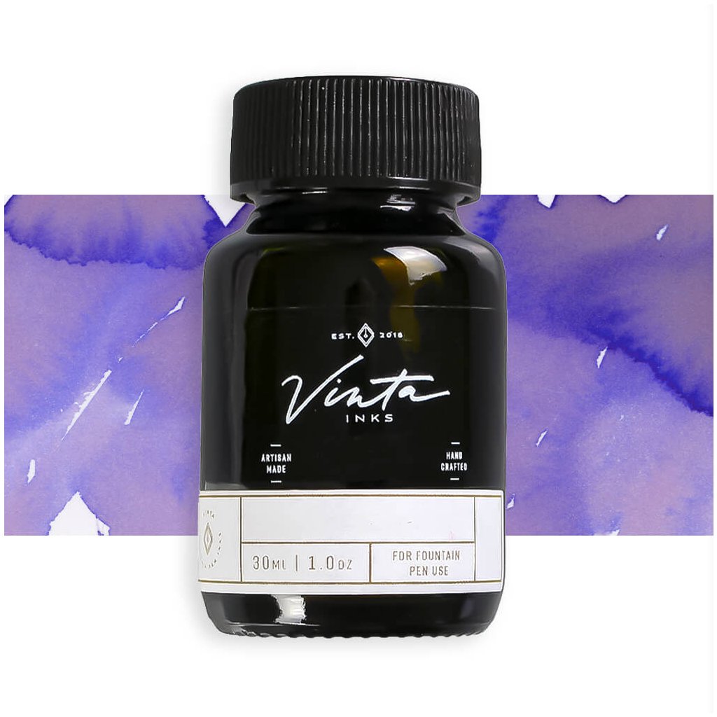Skleněná lahvička kouřové barvy s inkoustem je pečlivě zabalena v papírové krabičce se zlatou ražbou. Inkoust je rychleschnoucí, na vodní bází - není voděodolný. Svým složením jsou inkousty Vinta vhodné pro plnicí pera i kaligrafii.