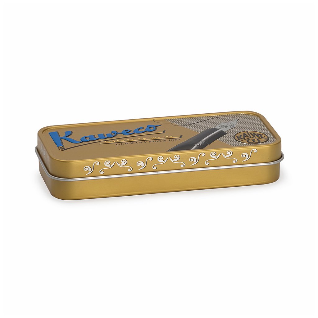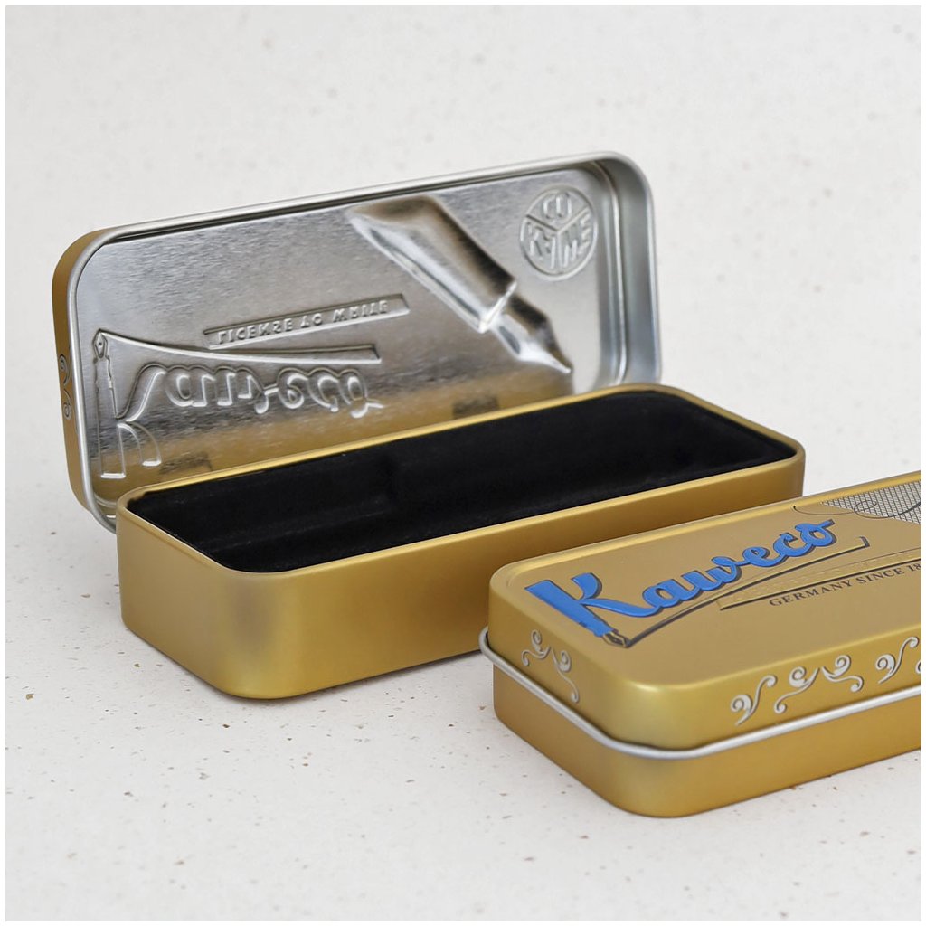Stylová kovová krabička Kaweco je víc než pouhý obal. Je to praktický box, který ochrání vaše oblíbené psací potřeby v bezpečí. Uvnitř najdete měkkou výstelku pro dvě pera – ideálně kombinaci plnicího a rolleru, pera a mikrotužky nebo dvě různobarevná pera modelu SPORT. Krabička se prodává samostatně, takže si ji můžete vybrat přesně podle svého stylu nebo s ní udělat radost někomu blízkému.