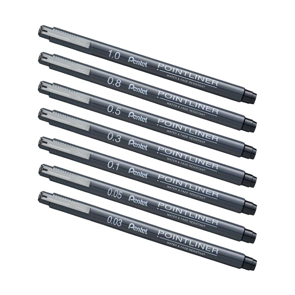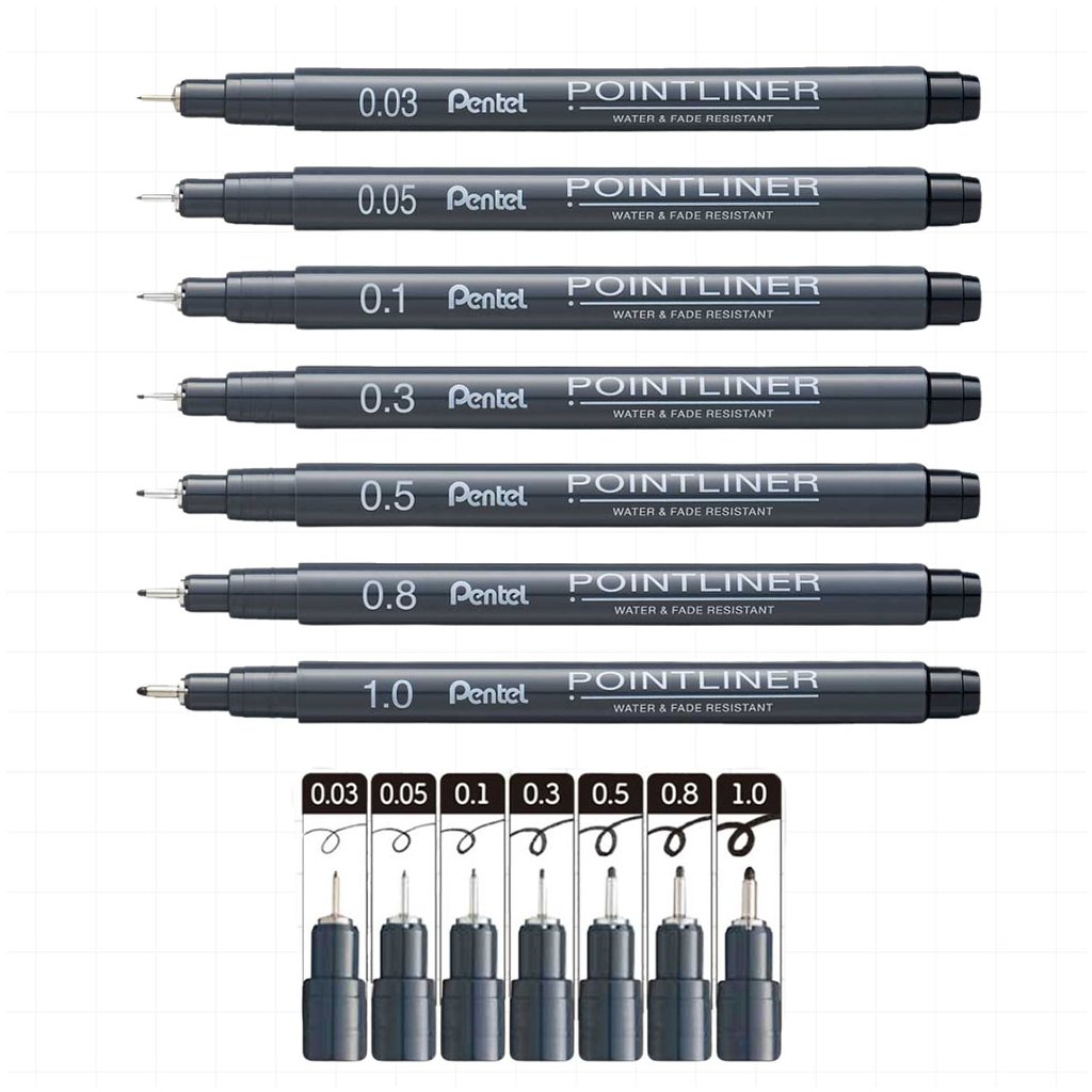 Pentel Pointliner je liner, který si oblíbíte pro jeho výraznou a přesnou stopu. Píše plynule bez přerušování a dobře se ovládá i při drobných detailech. Díky různým šířkám hrotu si snadno vyberete, jestli potřebujete extra jemnou stopu na malé písmo a detaily, nebo výraznější linku na kontury a zvýraznění.