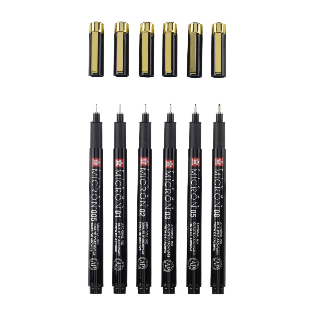 Linery Sakura Pigma Micron Black & Gold - Limitovaná edice, sada 6 ks