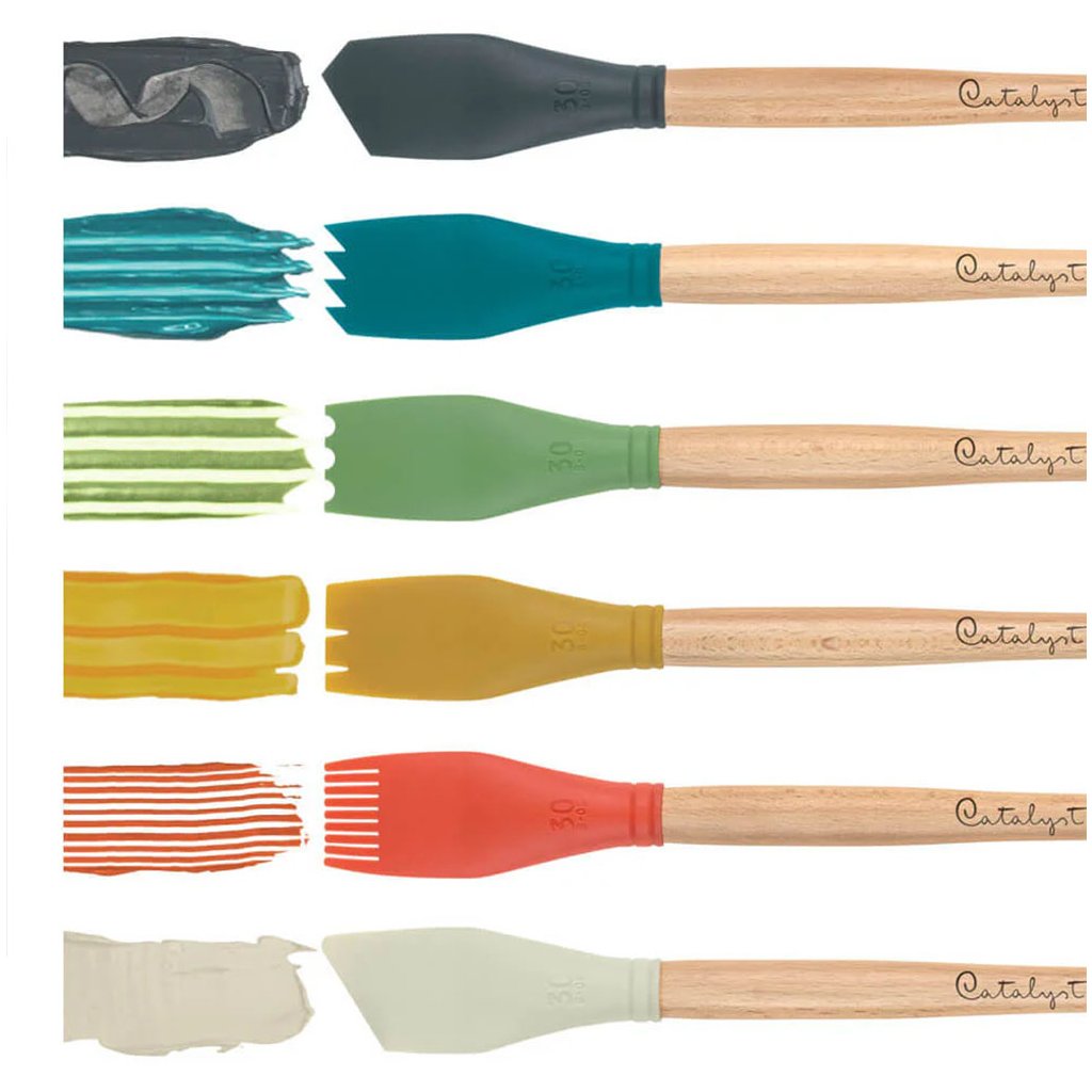 Skvěle se hodí pro akrylové, olejové i pastózní barvy, gely nebo modelovací pasty. Poradí si i s inkousty a tekutějšími médii. Silikon je odolný vůči teplu i rozpouštědlům, snadno se čistí a nepoškozuje povrch. Ať už nanášíte barvu, mícháte nebo vytváříte struktury, stěrka bude skvělou pomůckou, kterou budete s radostí používat opakovaně.