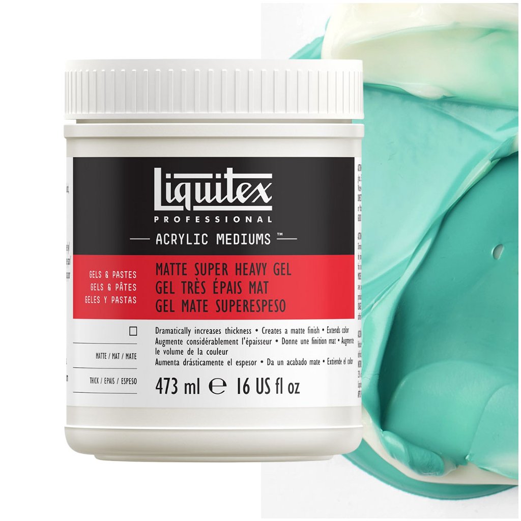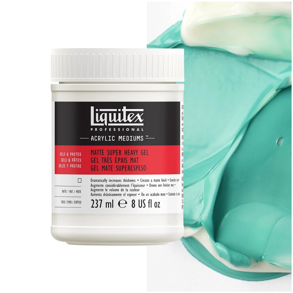 Pokud máte rádi texturu, ale dáváte přednost jemnému matnému vzhledu, matný Super Heavy Gel od Liquitexu e přesně pro vás. Dodá barvám objem, pevnost a plastický charakter, aniž by povrch zůstal lesklý. Má velmi hustou konzistenci, podobnou olejovým barvám, takže skvěle drží tvar a umožňuje tvořit výrazné reliéfy i špachtlové tahy. Po zaschnutí zůstává matný a průsvitný, takže nemění odstín barvy a zachovává její přirozený vzhled.