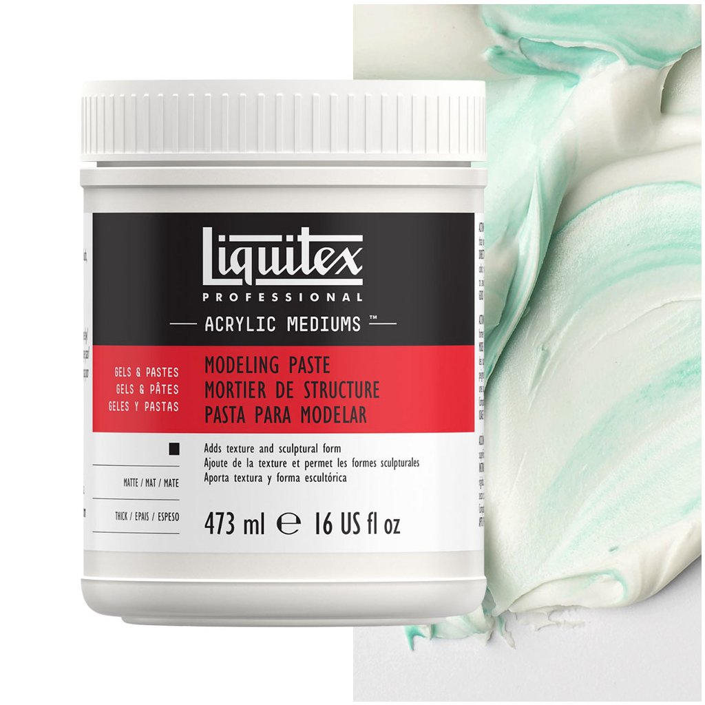 Různé materiály a možnostiPasta výborně přilne k různým povrchům, od plátna a dřeva až po karton, papír, sádru či kameninu. Nanášejte ji špachtlí, štětcem nebo rukou. Po zaschnutí lze povrch brousit, řezat či přetírat akrylovými barvami, a kombinací s médii Liquitex, jako je Gloss Gel Medium nebo Matte Medium, můžete doladit výsledný lesk i hloubku efektu. |