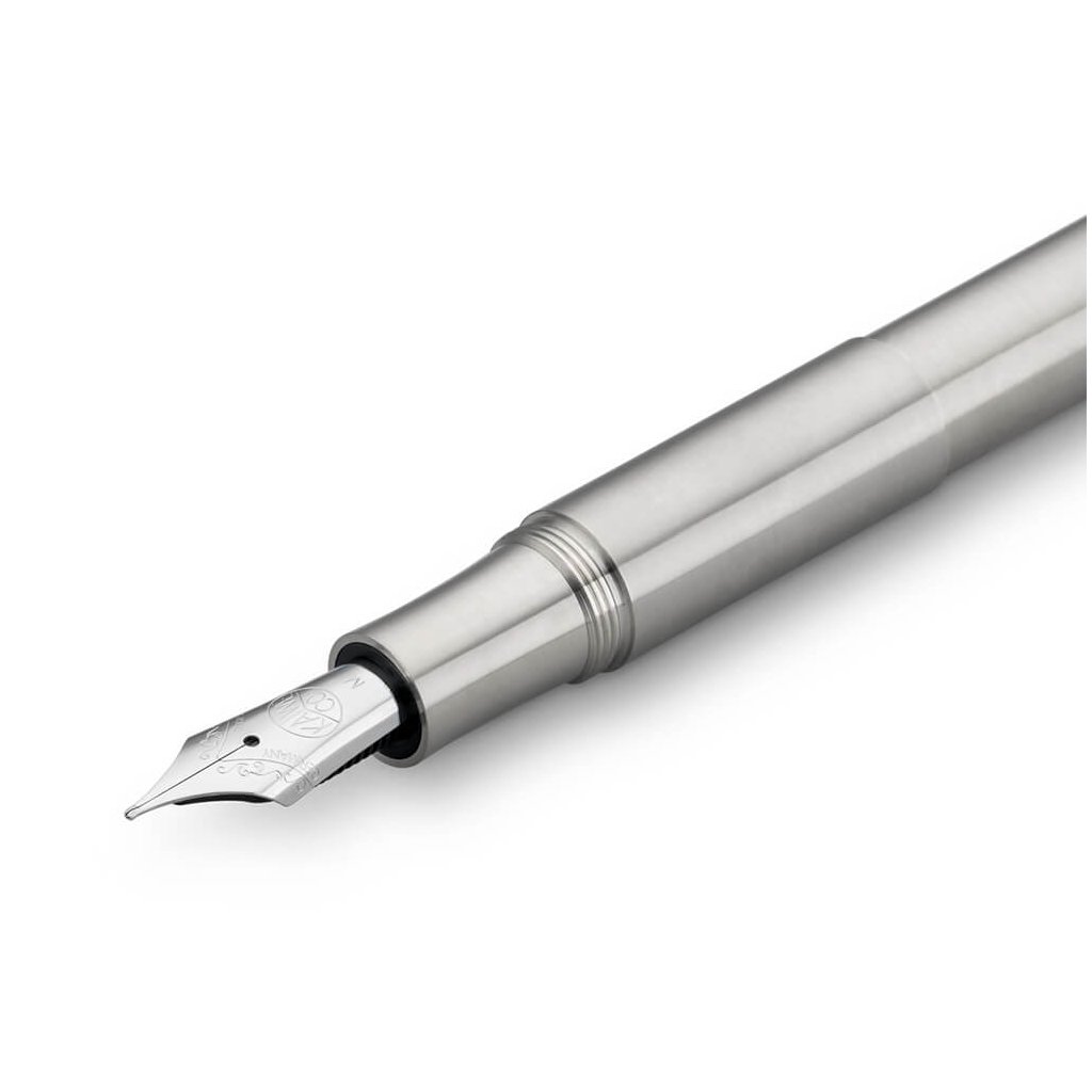 Kaweco Supra Stainless Steel je plnicí pero, které staví na eleganci, jednoduchosti a přesnosti. Tělo z nerezové oceli působí technicky, klidně a velmi nadčasově. Povrch zůstává dlouhodobě stejný a nemění se s časem, takže pero si zachovává svůj původní vzhled i při každodenním používání.