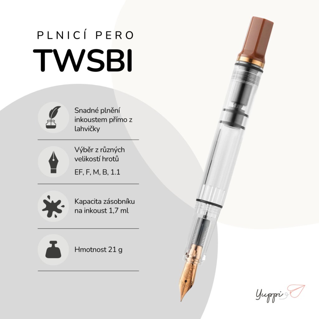 TWSBI je plnicí pero, které nejen skvěle píše, ale zároveň vás bude bavit používat. Je krásné, praktické a díky svému průhlednému tělu odhaluje každý detail – od hladiny inkoustu až po promyšlený vnitřní mechanismus.