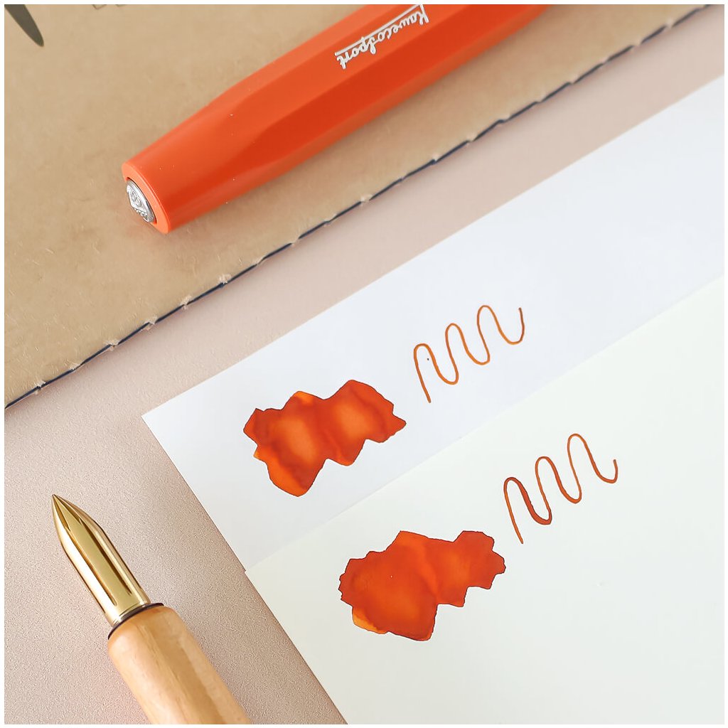 Hvězdný výkon inkoustuPapír Tomoe River vyniká svými schopnostmi dokonale předvést vlastnosti inkoustu jako jsou lesk, třpyt a stínování. To vše s minimálním nebo žádným prosakováním i při jeho nízké gramáží. Díky svým vlastnostem je tak papírem snů pro všechny kaligrafy a nadšence do plnicích per. Díky hladké struktuře papíru inkoust pomaleji zasychá. Papír tak nemusí být vhodný pro leváky. Poznámka: Ačkoliv papír nepropíjí, může dojít k prosvítání díky jsou nízké gramáži. Jedná se o běžný jev, který je někdy více či méně výrazný podle použitých psacích potřeb. |