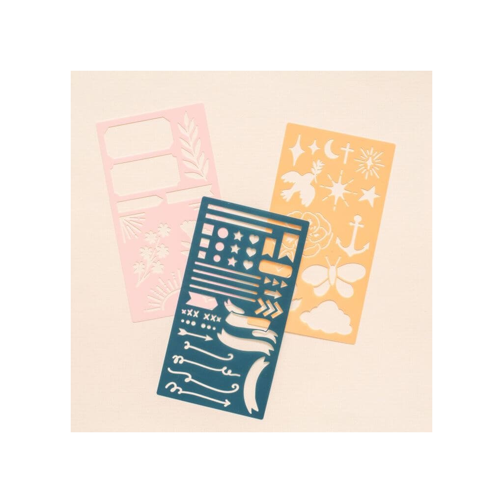 Plastové šablony k dozdobení, dotvoření přání nebo při výzdobě vlastního diáře a deníku. Jednoduché použití - šablonu přiložíte na podklad a obkreslíte. Obkreslený motiv můžete poté vybarvit. Doporučujeme používat psací potřeby s tenkým hrotem, nebo s použitím barvy ve spreji.