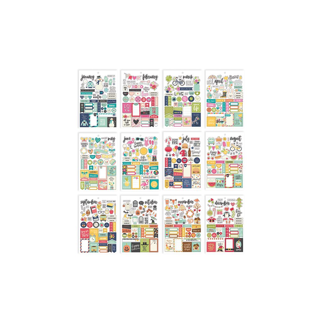 Sada obsahuje 12 aršíků - celkem 543 úžasných samolepek. Samolepky nabízí velkou škálu využití - od zdobení diáře, zápisníků, deníků - až po scrapbookové projekty a alba.
