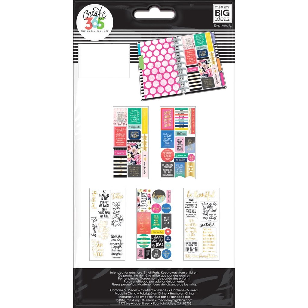 Samolepky od tvůrců diářů Happy Planner vynikají svou nápaditostí, kvalitou a velkým výběrem. Balení s 5 samolepkovými aršíky obsahuje různé druhy a velikosti samolepek, které vybízí ke kreativnímu využití.