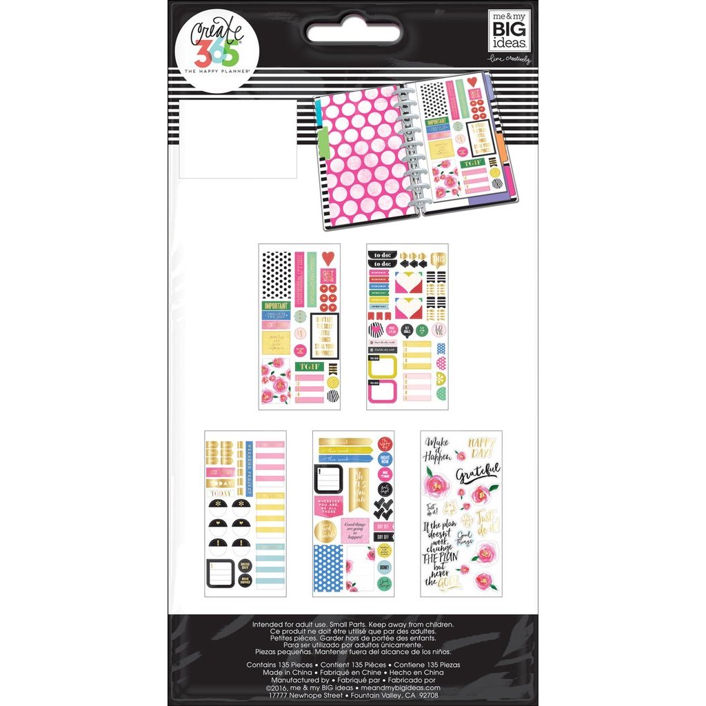 Samolepky od tvůrců diářů Happy Planner vynikají svou nápaditostí, kvalitou a velkým výběrem. Balení s 5 samolepkovými aršíky obsahuje různé druhy a velikosti samolepek, které vybízí ke kreativnímu využití.