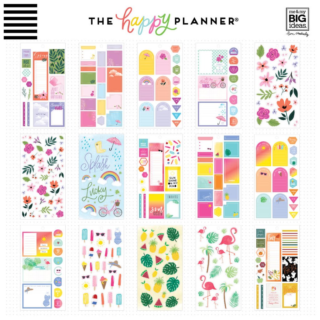 Samolepek není nikdy dost. A pokud jste stejně jako my jejich velkými milovníky, díky bločku s 30 aršíky samolepek Happy Planner získáte pořádnou zásobu. Tyto samolepky do diáře svou velikostí pasují do okýnek vertikálního rozvržení náplně u diářů ve velikosti CLASSIC. Tematické motivy ozdobných samolepek kreativně využijete i do jiných značek diářů, pro výrobu přáníček, zdobení v bullet journal nebo při scrapbookingu.