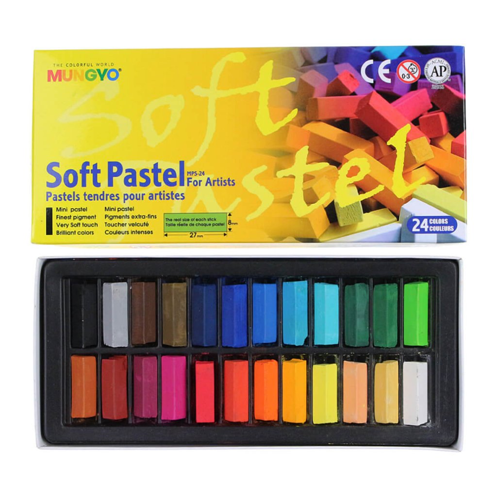 Měkké pastely korejské značky Mungyo se těší velké oblibě pro svou vysokou kvalitu, světlostálost a lehkou aplikaci. Suché pastely jsou dobře pigmentované, barvy jsou jasné a syté. Díky svému složení se lehce nanáší. Jednotlivé barvy se dobře vzájemně mísí a dosáhnete s nimi krásných barevných přechodů.