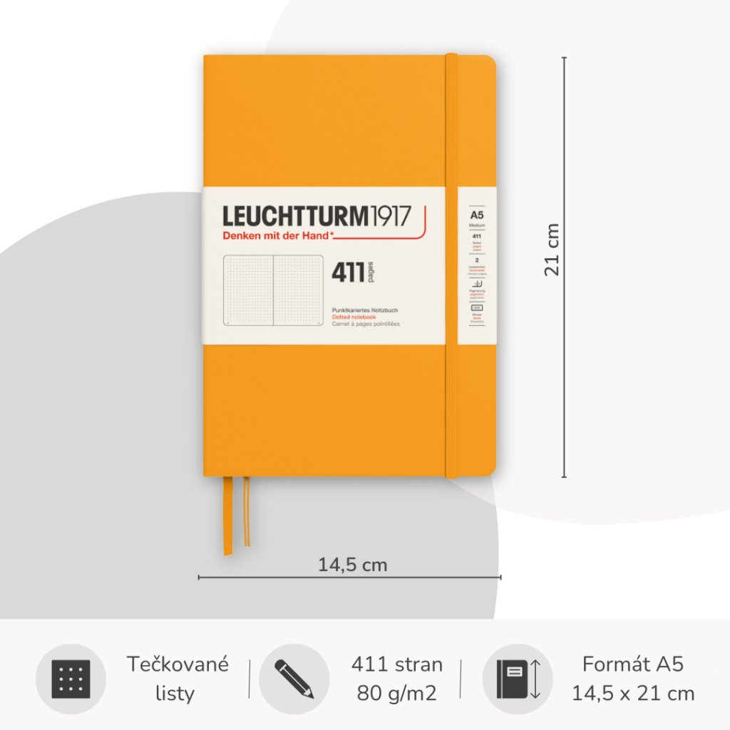 Na plánování, Bullet Journal, zapisování myšlenek a poznámek i skicování - tečkovaný zápisník Leuchtturm1917 je skvělý pomocník pro každý den. A nově máte ještě víc prostoru navíc, díky rozšířené edici s 411 stranami.