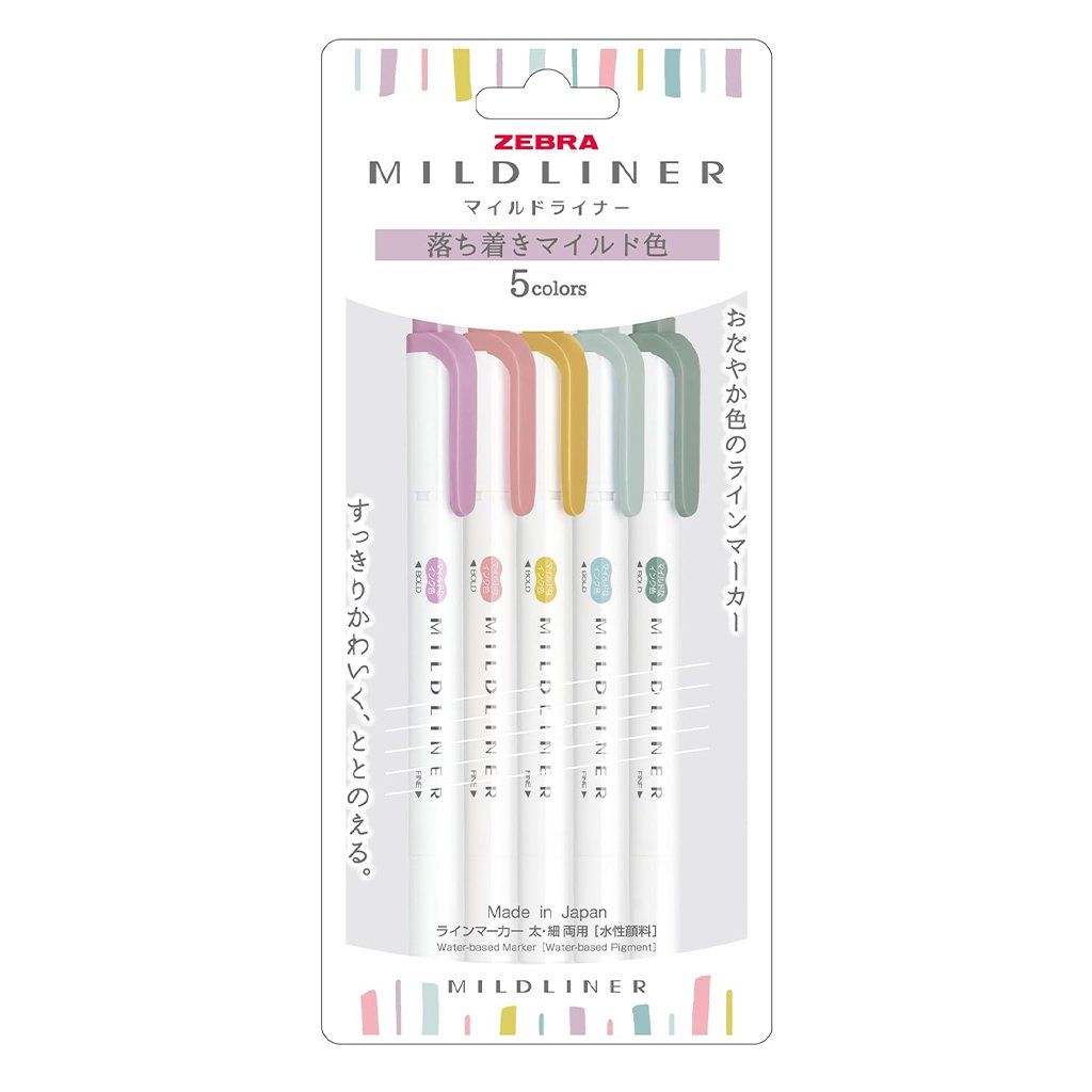 Zvýrazňovače Zebra MILDLINER - Calm, sada 5 ks