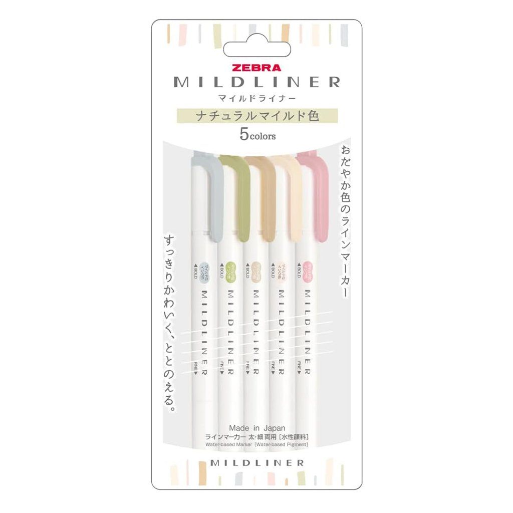 Zvýrazňovače Zebra MILDLINER - Natural, sada 5 ks